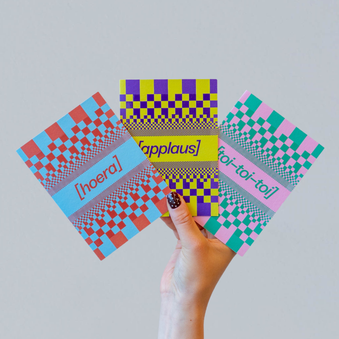 Applaus! Hoera! Toi, toi toi! Haal jij alle theaterwensen vast in huis, zodat je altijd een fijne wens kan toesturen? Kies dan voor de set met alle drie de kaarten ontworpen door All Sizes in opdracht van Het Nationale Theater.